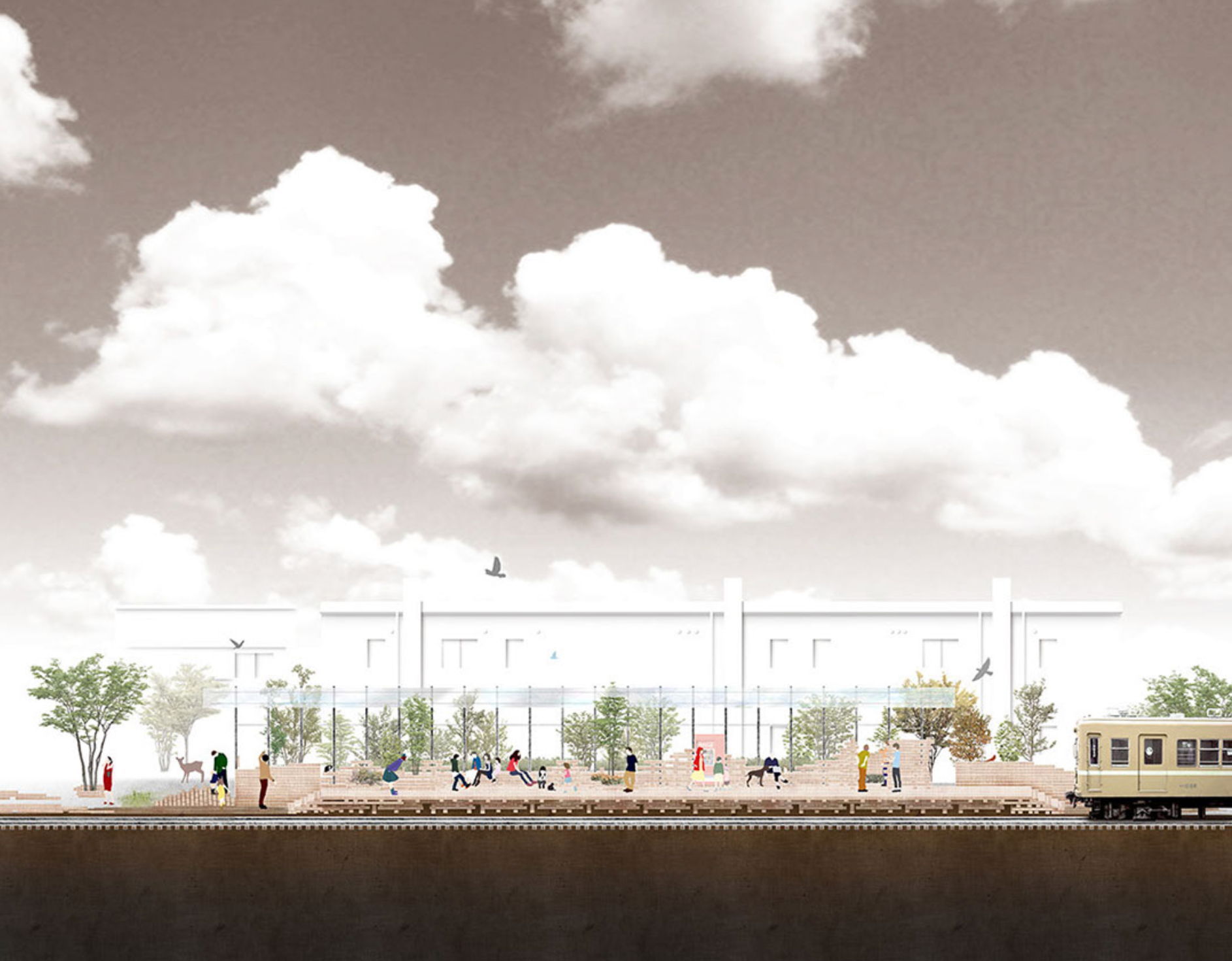 Using the railway waste of sleepers as building materials, consider the landscape of the new station building and the line along the tree Frames. Architecture lives of nationally look even Station (railroad) has already celebrated the life, but the one-man railway across the country are being culled from the era compared with the main railway, also funds also time left is symmetrical. So rather than creating entirely new, and suggests its own station building reconstruction utilizing the stock. The sleeper was dressed in the already time, people of course white conceived of many of life, such as plants and animals and insects at the same time of human scale module and provides a warm and serene landscape not to station building made of concrete and iron in town for us to form a. Also it includes the aspect of further station building development with sleepers effectively be used in the formation of the pavement and landscape of post-hybridization line, 21 century of the organic architecture suggest the possibility of a public space development, such as primary raw activity lines and parks It becomes.